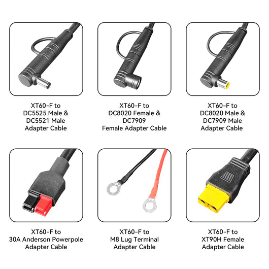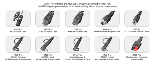 U20 Universal Cable Kit with 17 Different XT60 Adapter Cables, 3*Z30 Hub, 1*Monitor Hub, XT60-F to MC4/DC5525/Cigarette Adapter/XT60 Female/XT60 Male for Power Station, Solar Panel